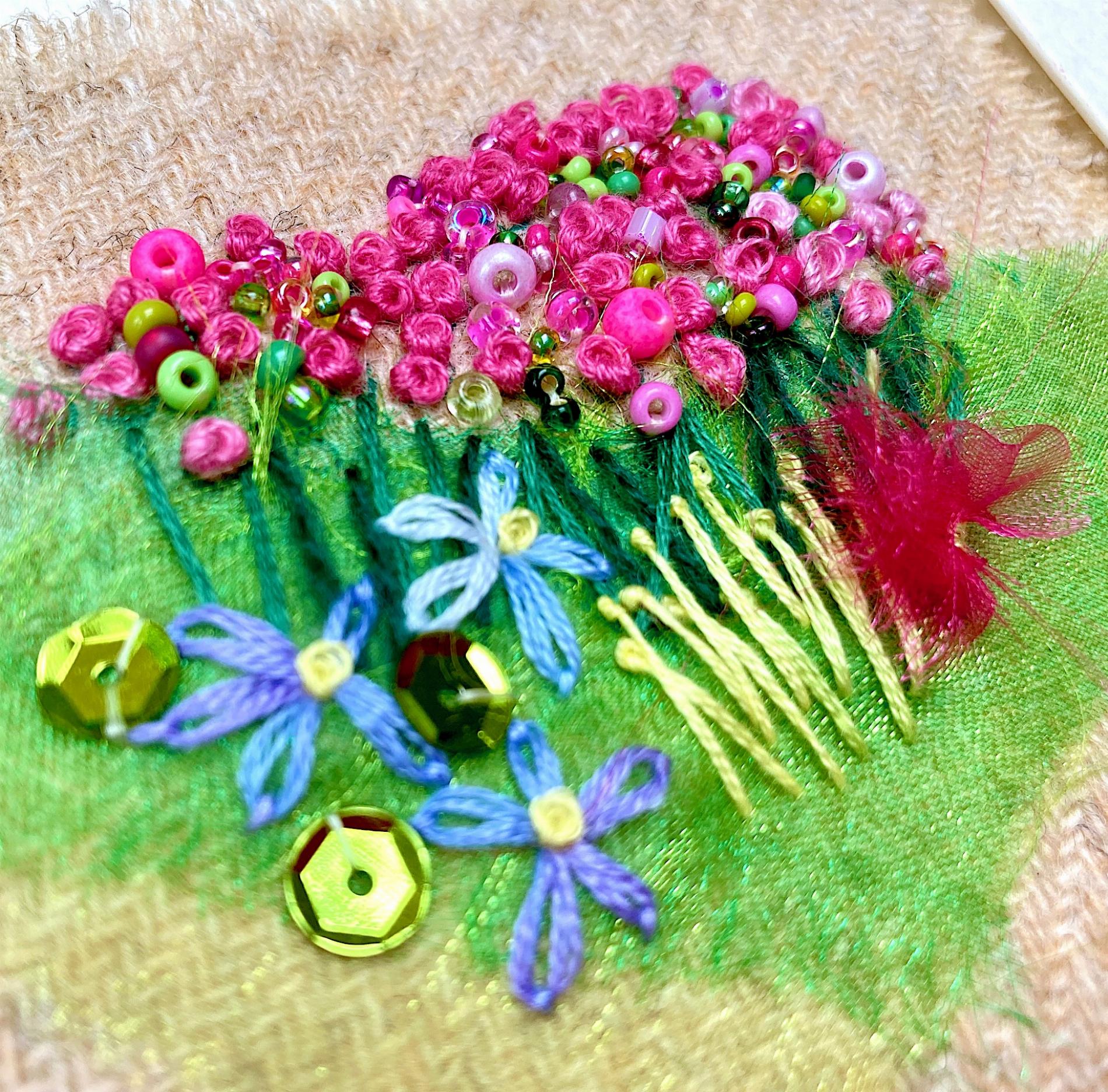 Each kit makes 6 different cards complete with envelopes for you to send the cards to your favourite people. Add as much sparkle as you wish to really catch the eye! Inside every kit you will find fabric with design clearly printed, threads on an organizer card, clear "customer proof" instructions and diagrams, a chenille needle (bigger eye than an ordinary needle) wrapped in protective plastic, and on the front cover, Rowandean's "see every stitch" colour photo.
