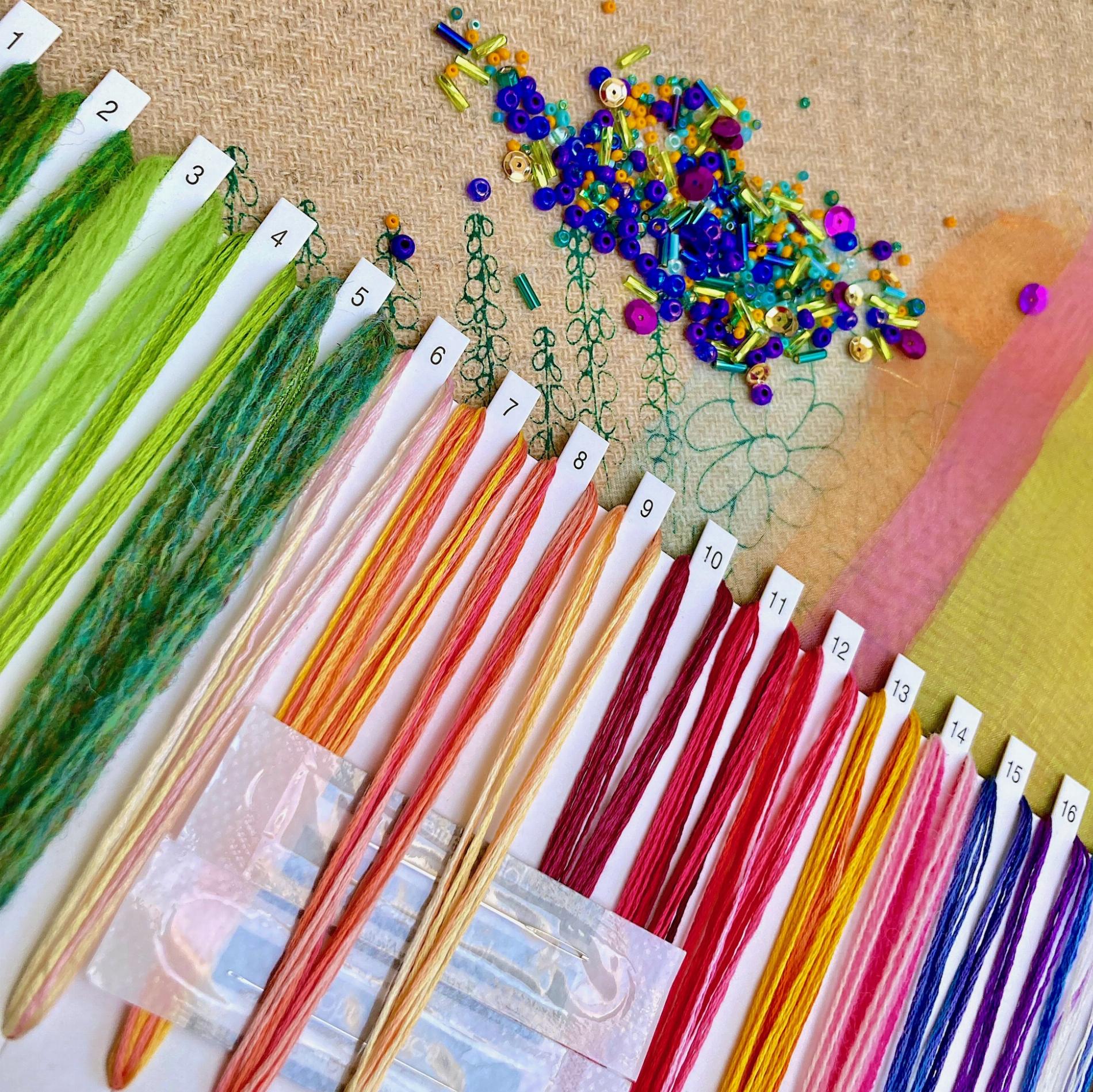 • Easy stitching and the clever use of beads, sequins, and organza make this simple kit a joy to do