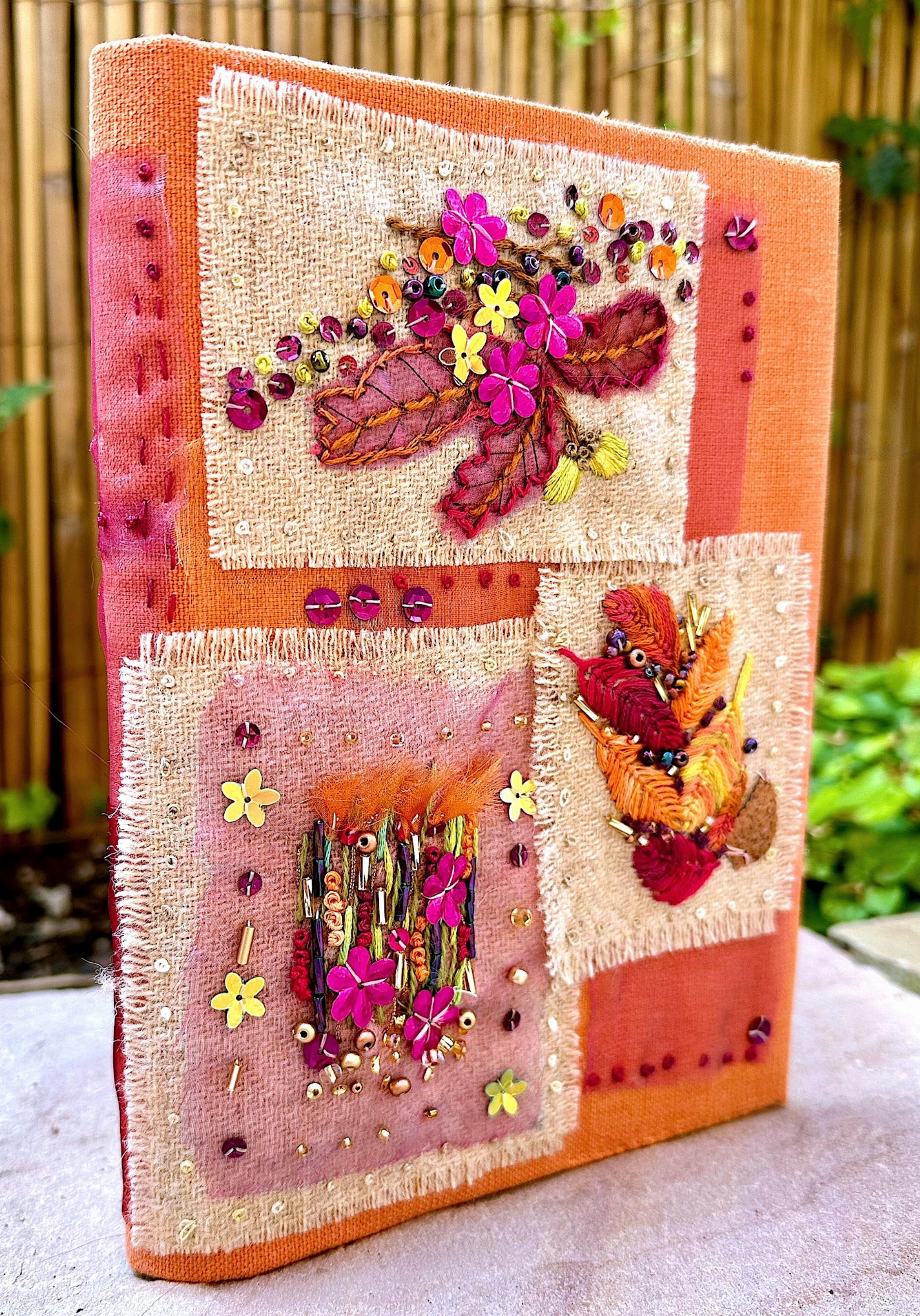 This lovely book cover kit comes with terracotta cotton fabric for the cover and a large piece of 100% wool tweed fabric for the designs. Will fit A5 and smaller books and notebooks.