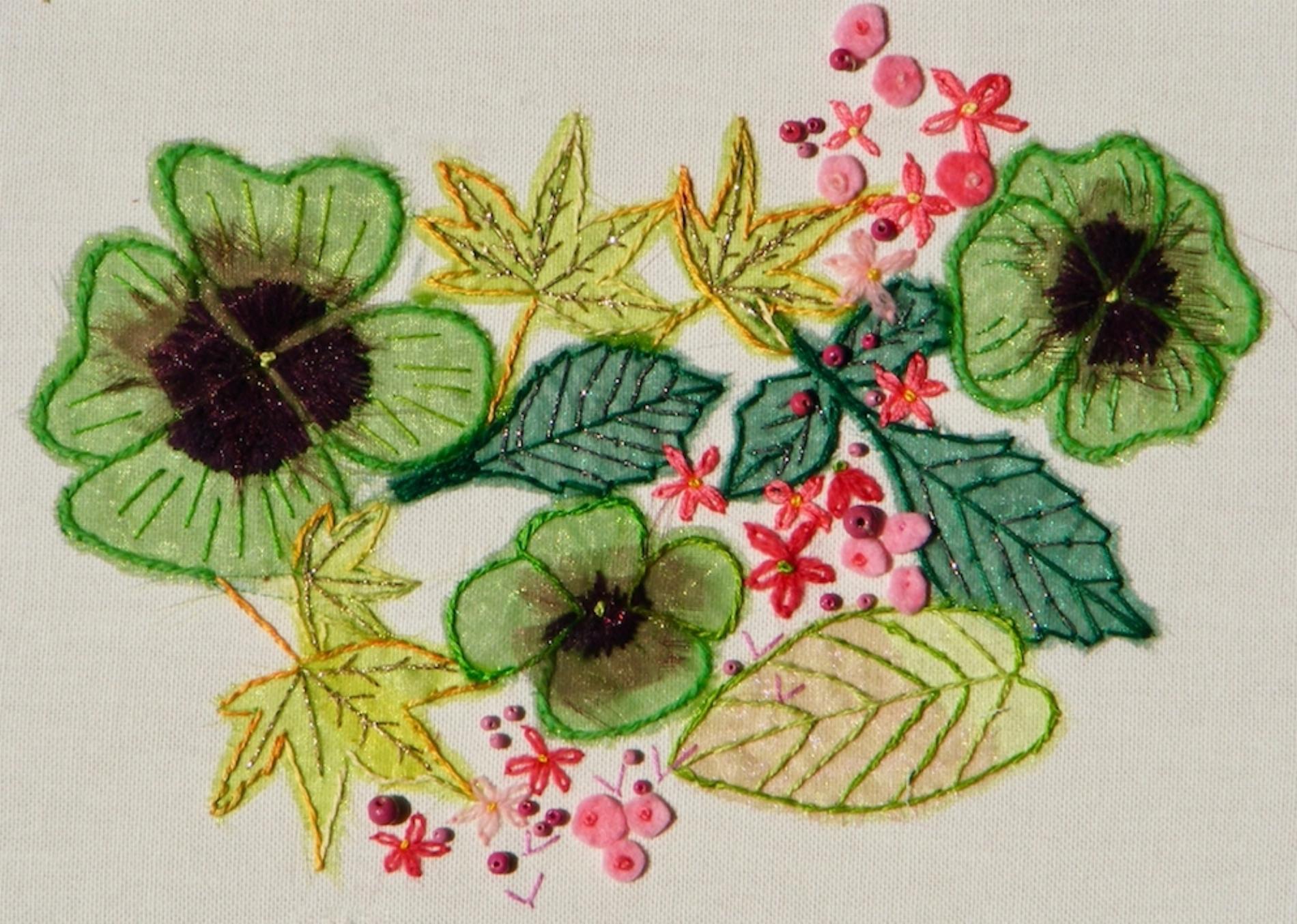 Fabric size: 42cm x 42cm. This is suitable for making into a 40cm cushion as well as a framed picture. Embroidered area approx. 30cm x 24cm. Kit contains printed fabric, coloured organza fabrics, beads, threads on numbered organiser card, fully illustrated step by step instructions, and plastic wrapped chenille and beading needles. For a contemporary look we suggest mount the piece as a "canvas".