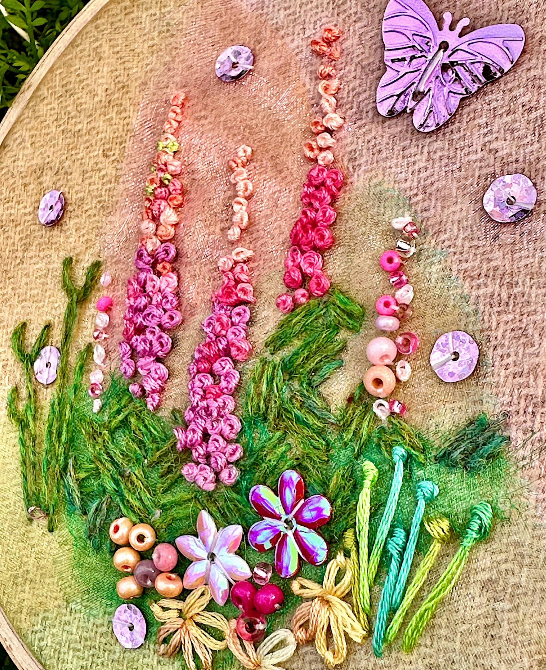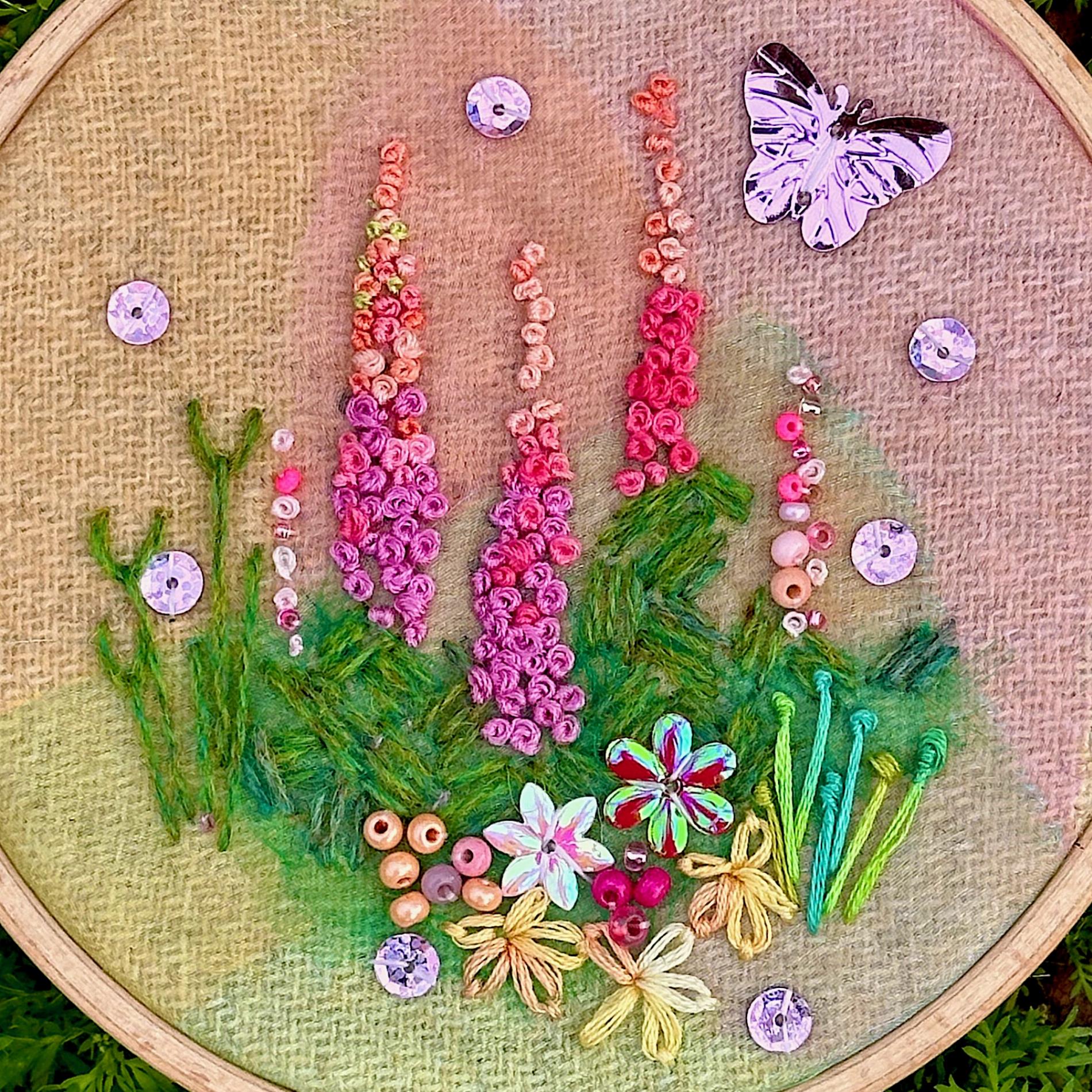 This variety of Foxgloves is large and bright as a mountain of candy! Inside every mini & mini plus kit you will find fabric with design clearly printed, threads on an organizer card, clear "customer proof" instructions and diagrams, a chenille needle (bigger eye than an ordinary needle) wrapped in protective plastic, and on the front cover, Rowandean's "see every stitch" colour photo.