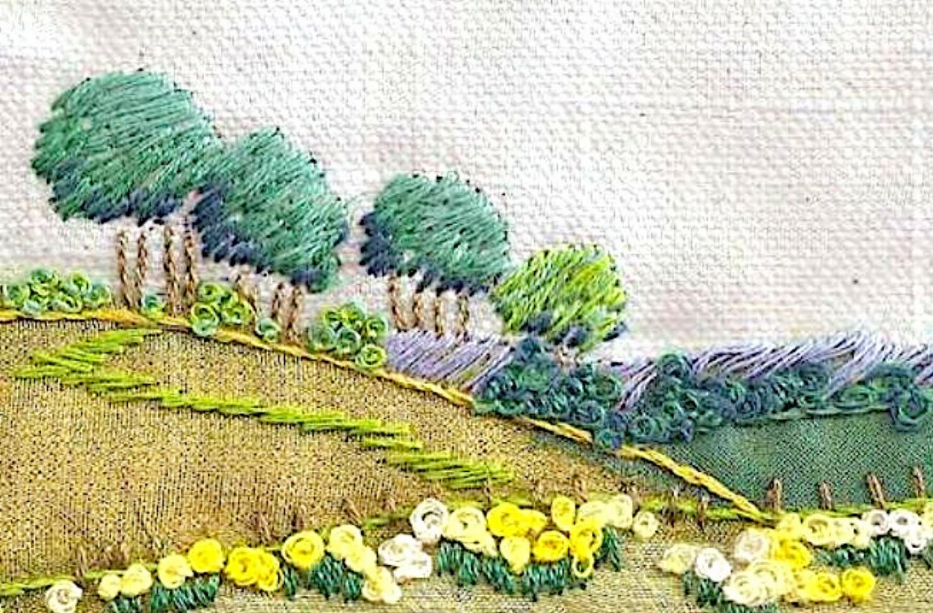 Inside every mini & mini plus kit you will find fabric with design clearly printed, threads on an organizer card, clear "customer proof" instructions and diagrams, a chenille needle (bigger eye than an ordinary needle) wrapped in protective plastic, and on the front cover, Rowandean's "see every stitch" colour photo.