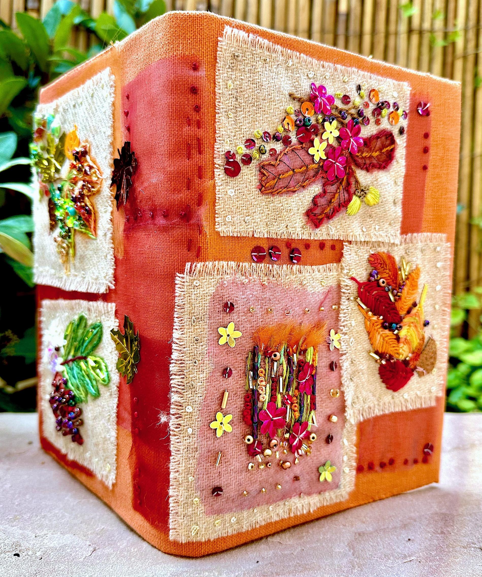 This lovely book cover kit comes with terracotta cotton fabric for the cover and a large piece of 100% wool tweed fabric for the designs. Will fit A5 and smaller books and notebooks.