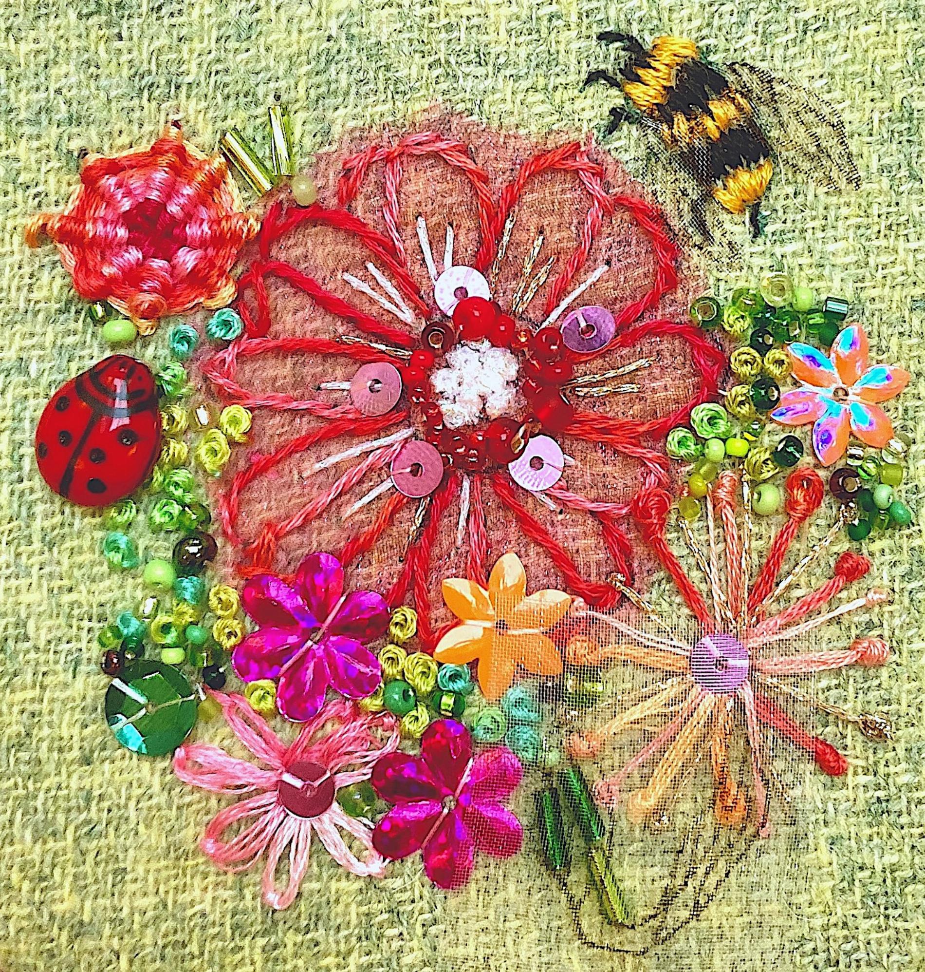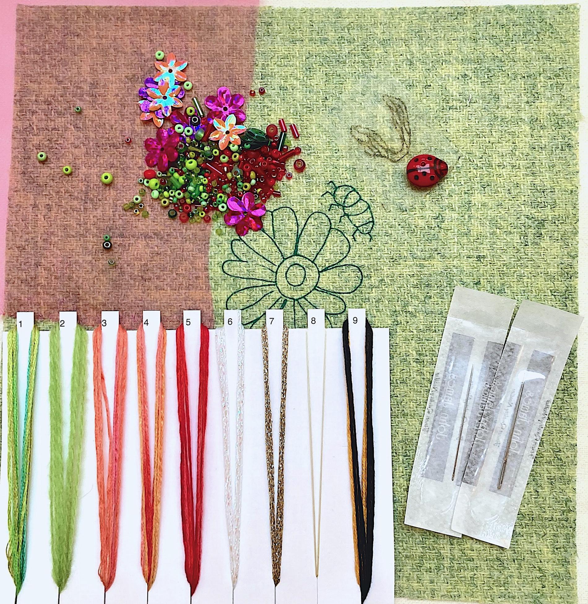 This busy bee just can’t get enough of these fully open beautiful Daisies. There is even a Ladybird getting in on the action! Inside every mini & mini plus kit you will find fabric with design clearly printed, threads on an organizer card, clear "customer proof" instructions and diagrams, a chenille needle (bigger eye than an ordinary needle) wrapped in protective plastic, and on the front cover, Rowandean's "see every stitch" colour photo.