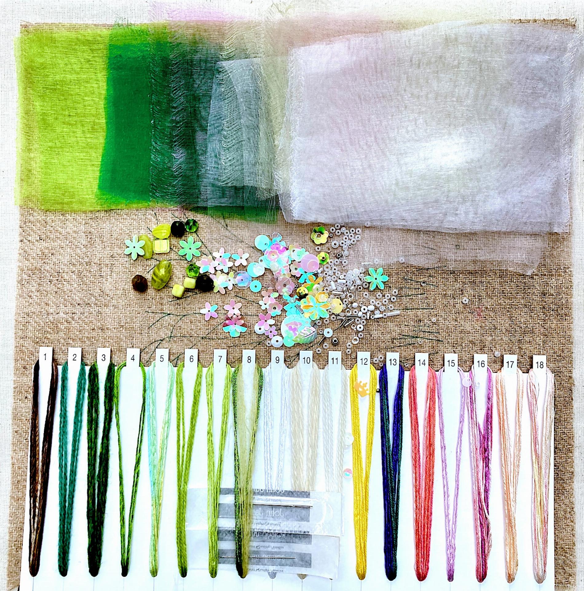 - Easy stitching and the clever use of beads, sequins, and organza make this simple kit a joy to do